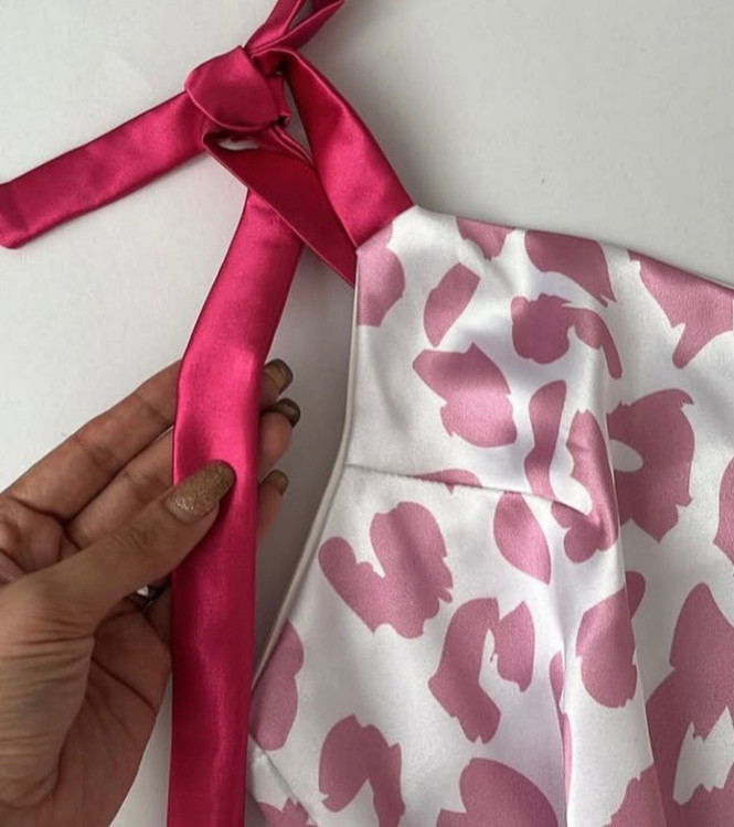طرح پلنگی صورتی ،پینترستی،خوشگل نرم و لطیف جنس ساتن الیکس درجه یک، سایز بندی کامل داره و پشت کار کش کار شده