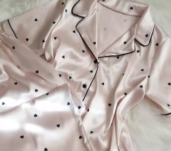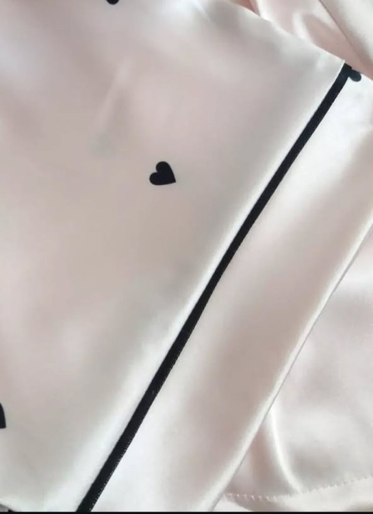 ست بلوز شلوارزنانه استین بلند طرح قلب جنس ساتن الیکس