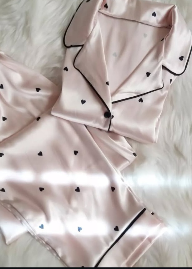 ست بلوز شلوارزنانه استین بلند طرح قلب جنس ساتن الیکس